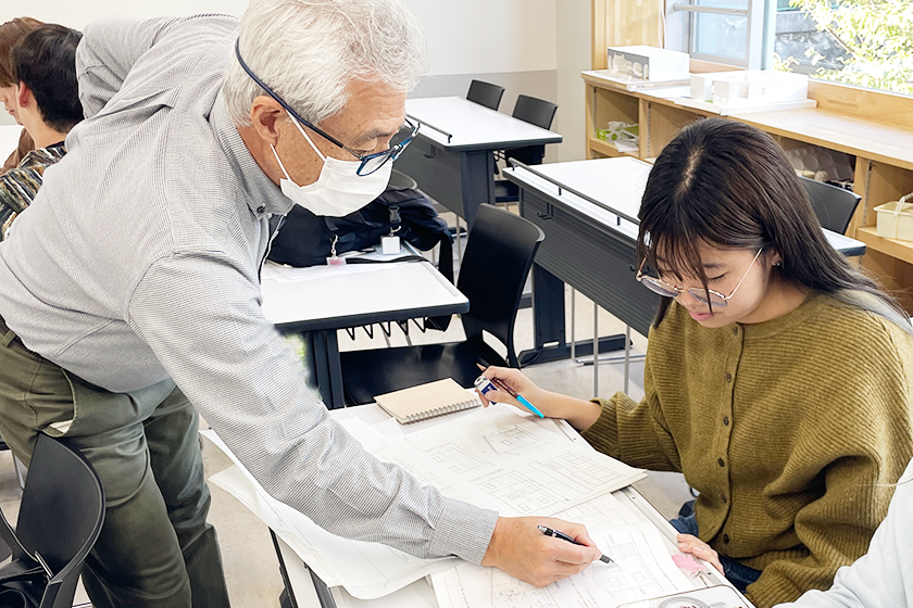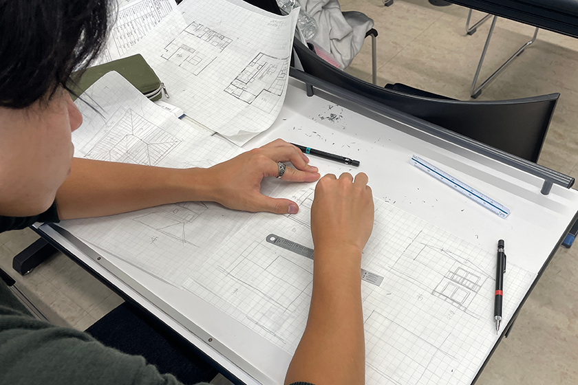 半年間の建築知識を学んだ学生たちは、ついに木造二階建ての設計課題に挑戦です。小空間デザインの経験はあるものの、初めてのプランニングにはワクワクが止まりません。