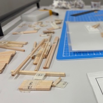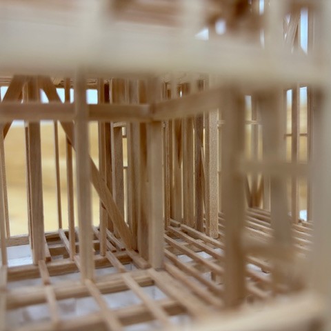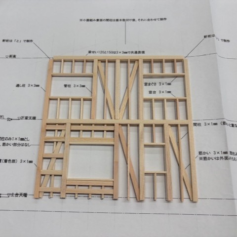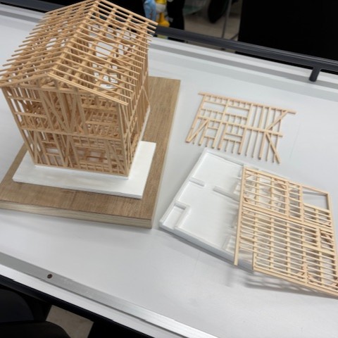 木造の骨組みは部材も多いので、模型をつくりながら覚えていきます。