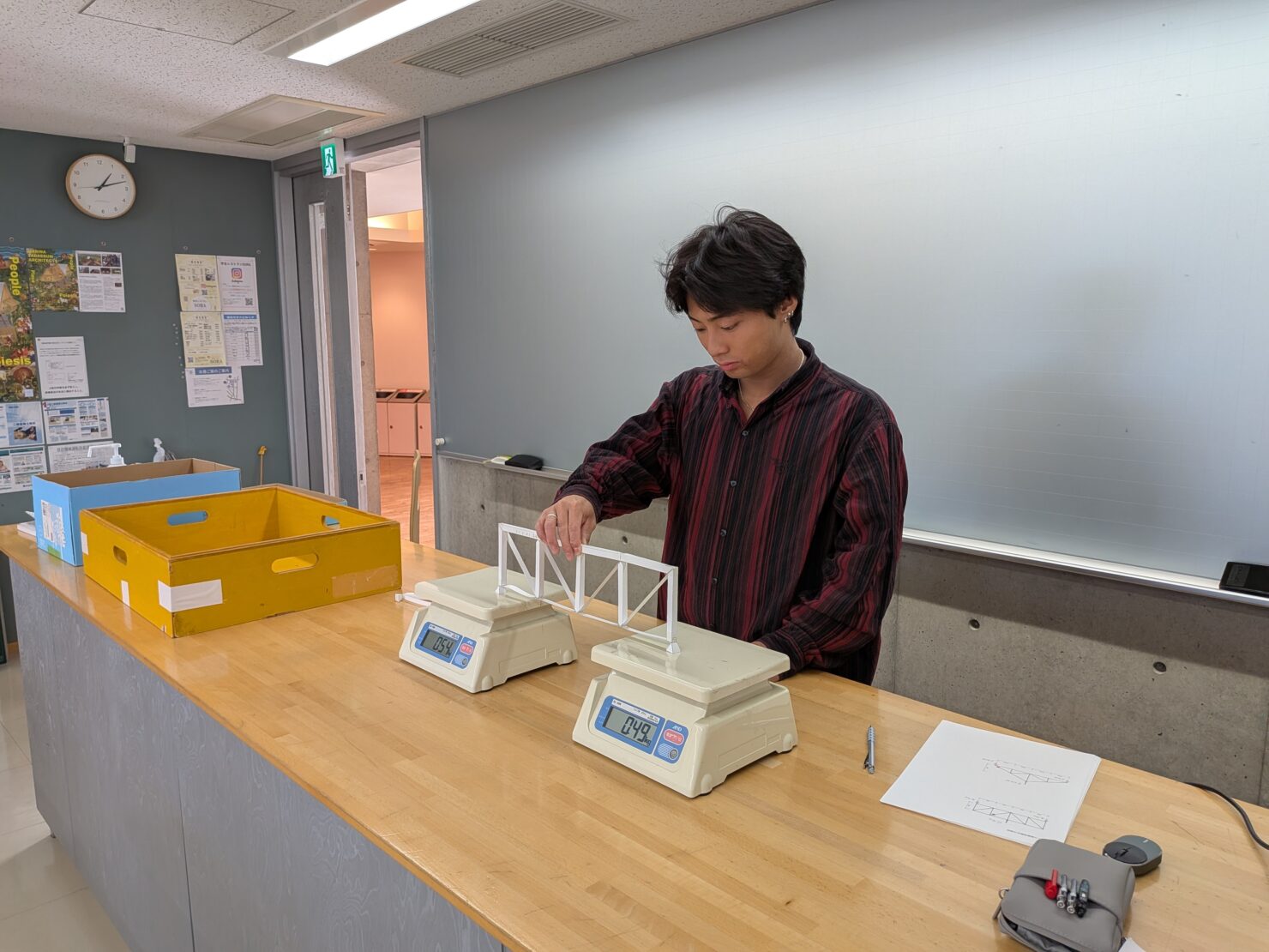 今回はケント紙を使って簡易的なトラス構造の模型を作り、その強さと壊れ方を観察する破壊実験を行いました。