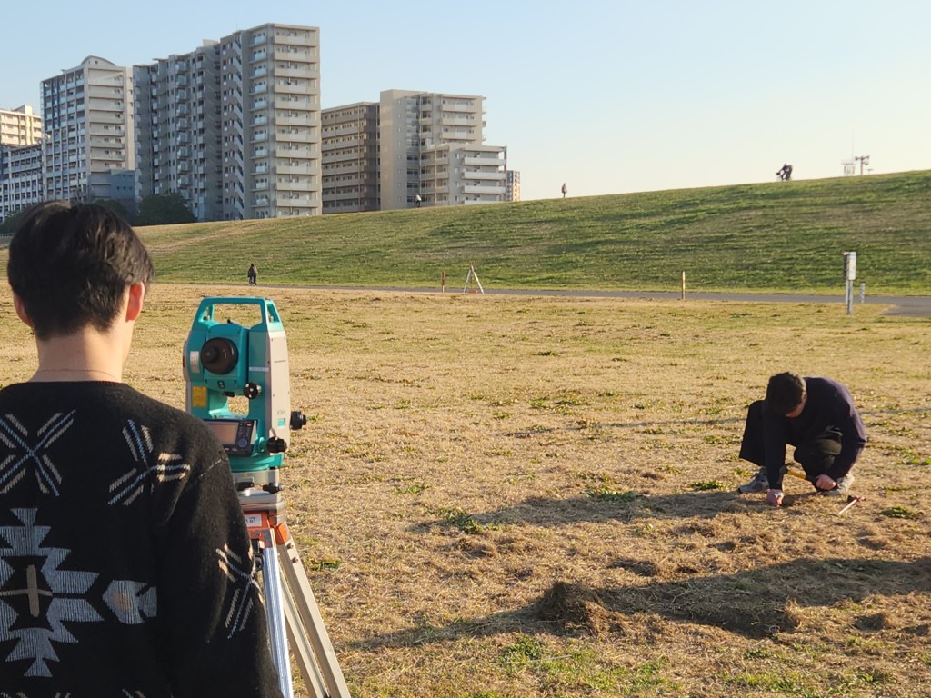 今回は、班毎に設置をした測点(交点)の座標値を使って「復元測量」を行い、「何のために基準点測量を行ったのか」を経験しました。