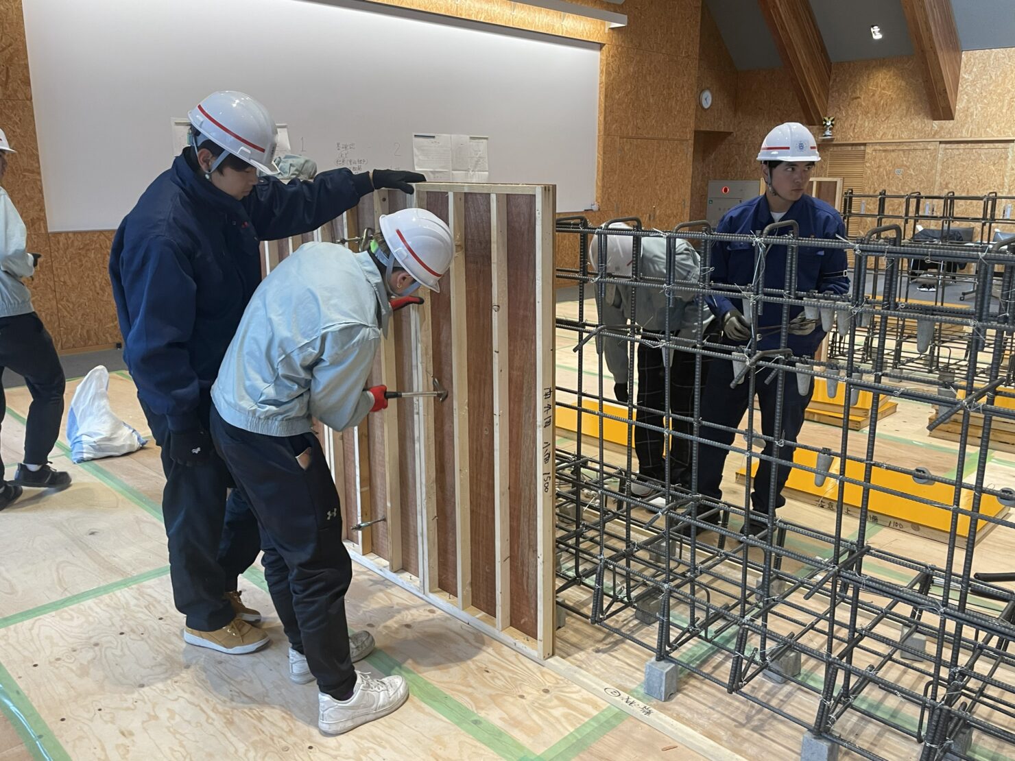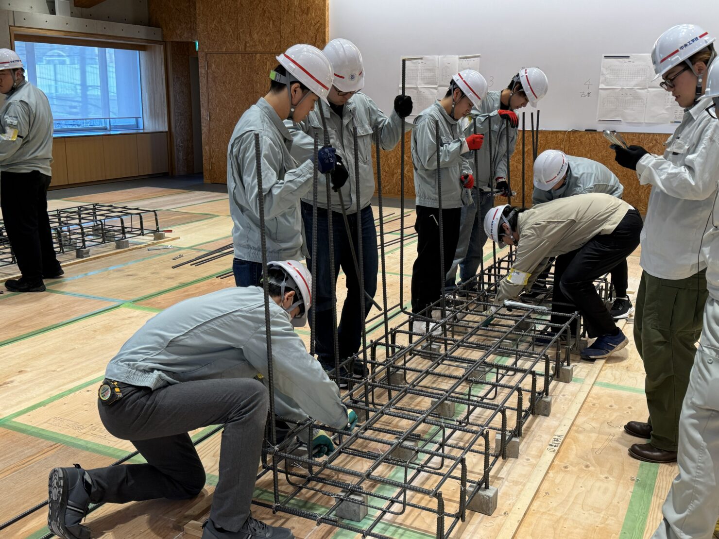 2日目は実習として、鉄筋・型枠の組み立てを行いました。