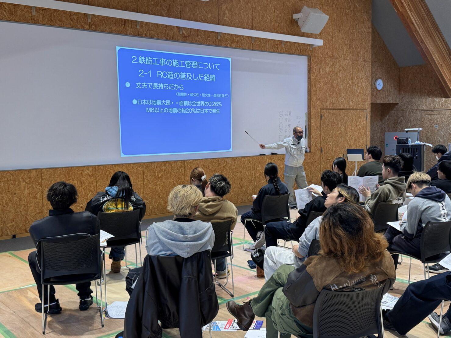 1日目は講義として施工管理や鉄筋・型枠の設計図面の見方などを学習しました。