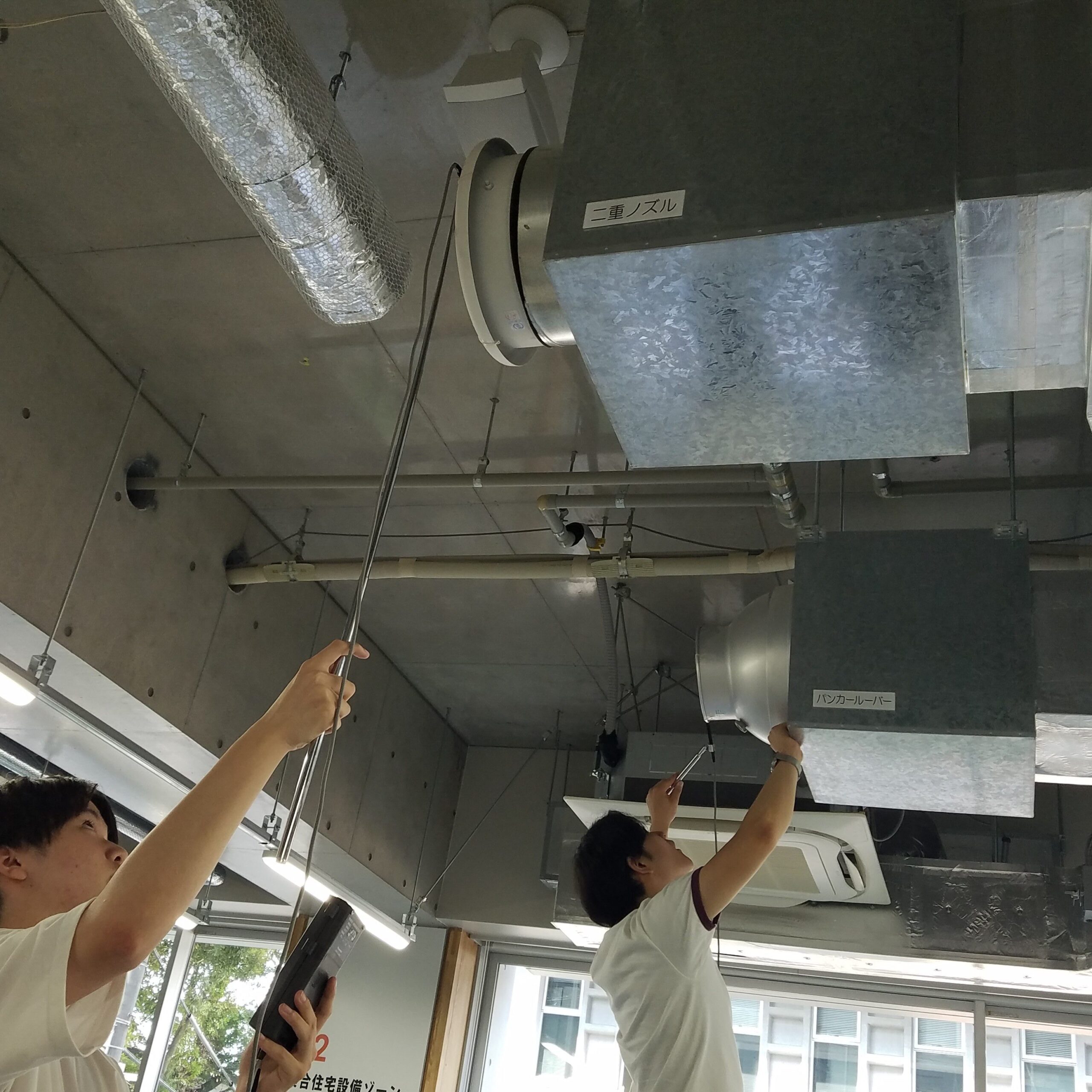 環境測定とは、環境中のさまざまな要素を測定し、環境の状態を評価することを指します。今回の授業では、空調機器の能力を求める実習。