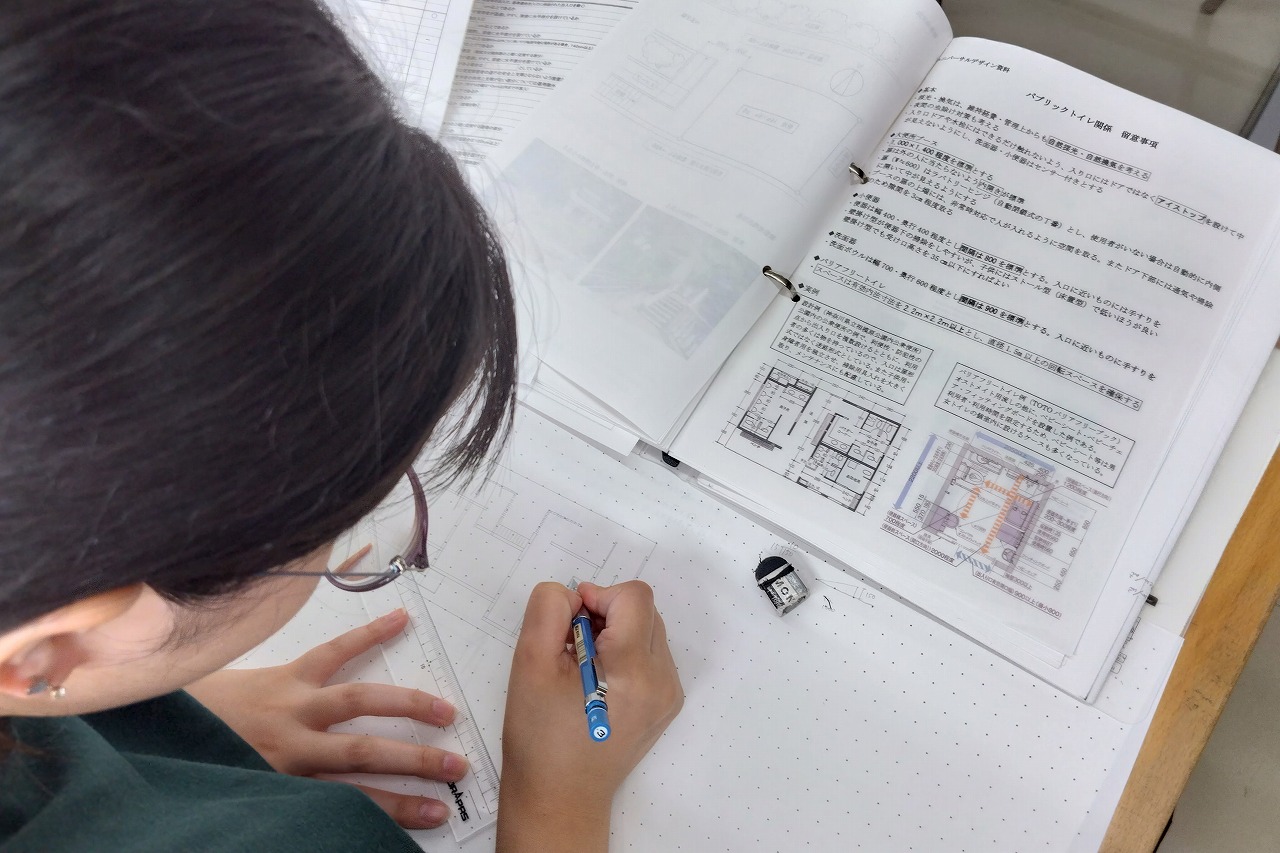建築学科では、講師による詳しい講義や様々な演習を通じて、ユニバーサルデザインやバリアフリーの在り方を学んでいくことができます。