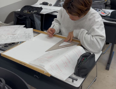 建築工学科1年生が進級課題で取り組んだのは、木造2階建住宅設計。