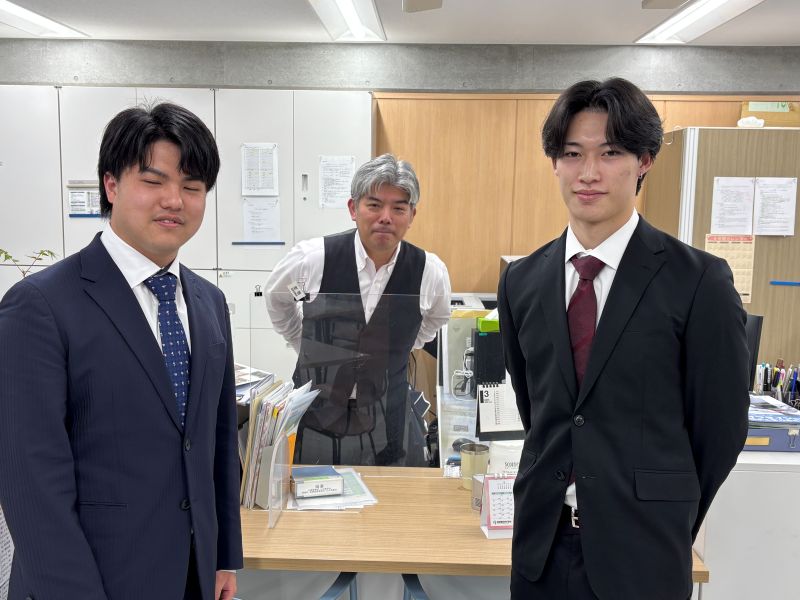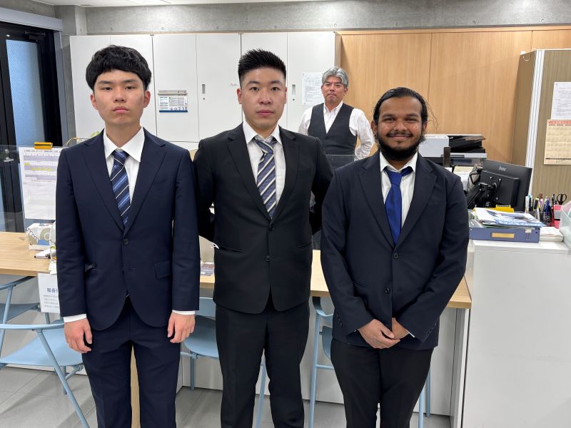 土木建設科の卒業生たち。自分の就職が決まってからもまだ決まっていない友人に付き添って来てくれていました😘