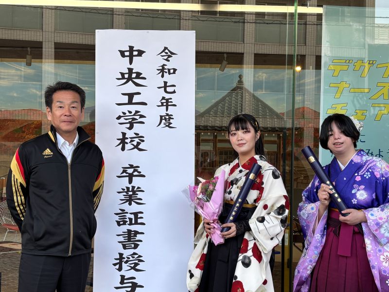 中央工学校卒業という自信と誇りを持ち、謙虚な気持ちを忘れずに大きく羽ばたいていってください。