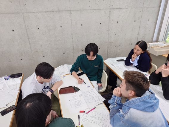 「住む人はどんな暮らしを求めているのか?」そんな問いに対し、グループで知恵を出し合います。自分一人では思いつかなかったような意外なアイデアや、生活者目線の鋭い意見が飛び交い、教室の温度が一段上がったように感じられました。