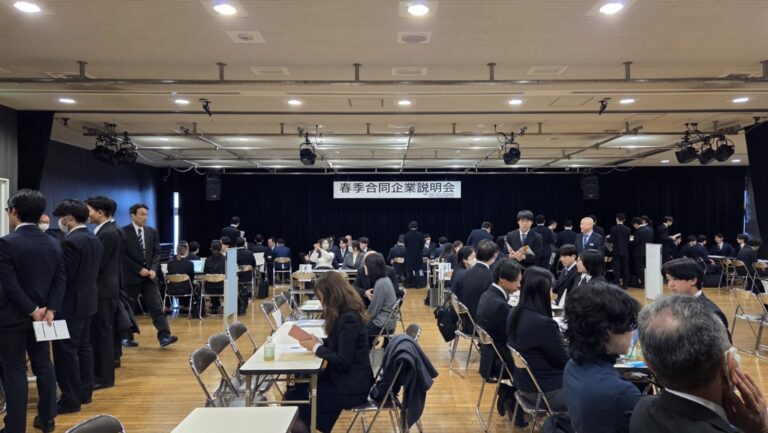 3月4日(水)北とぴあにおいて、これから就職活動に入る学年を対象とした合同企業説明会が、午前・午後に分かれて行われました。360社以上の企業が参加する大規模な説明会です。 -