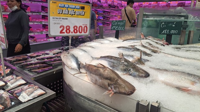 鮮魚売り場に堂々と横たわるのは日本で言うナマズ。