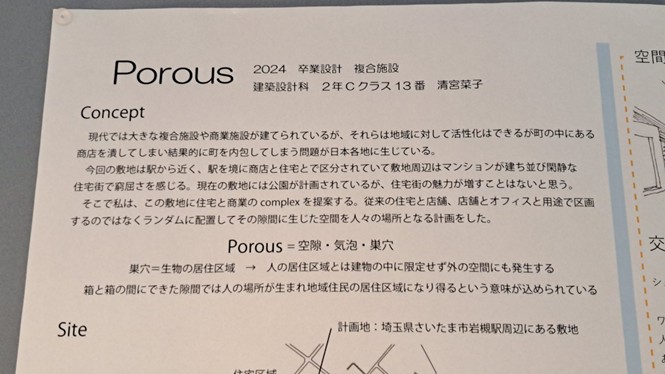 下の写真は令和5年度建築設計科を卒業した清宮菜子さんの作品です。