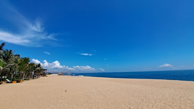 美しい海岸には一人の観光客もおらず、はるかに続く海岸線と青い海が私の目の前に広がっています。