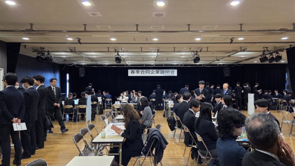 3月4日(水)北とぴあにおいて、これから就職活動に入る学年を対象とした合同企業説明会が、午前・午後に分かれて行われました。
